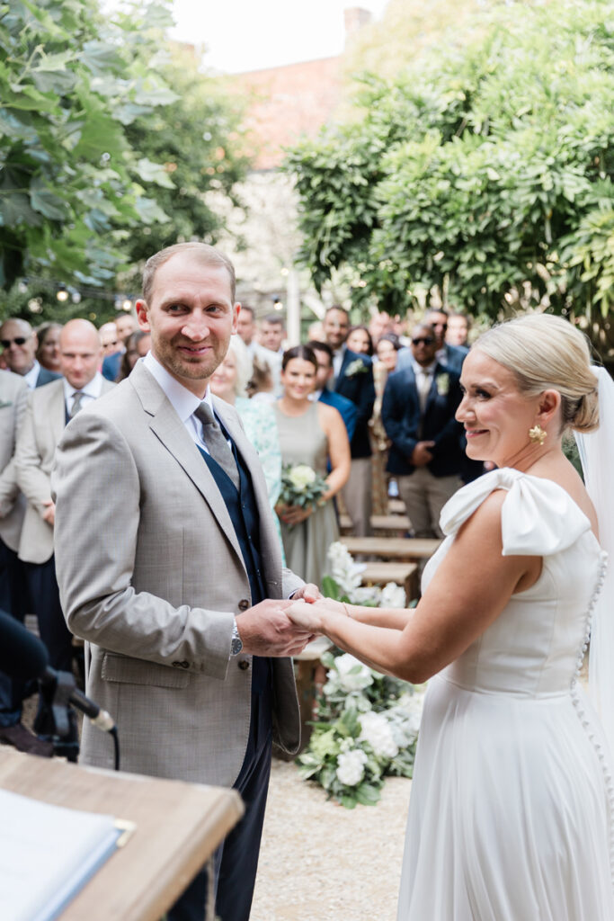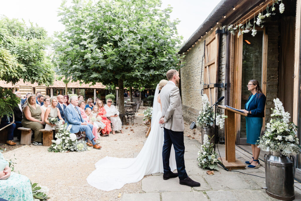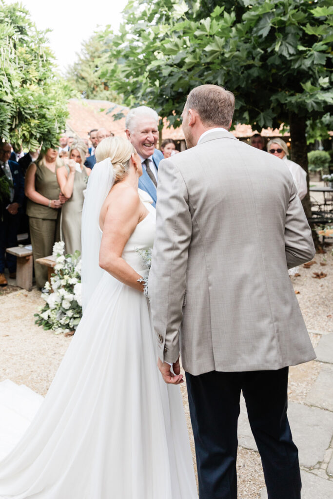 Lucy and Andrew chose to hold their ceremony in the courtyard, which was the perfect setting for an intimate and relaxed “I do”. Surrounded by rustic stone walls and greenery, it created a warm, welcoming atmosphere for their guests and allowed the day to flow naturally from one part of the venue to the next.