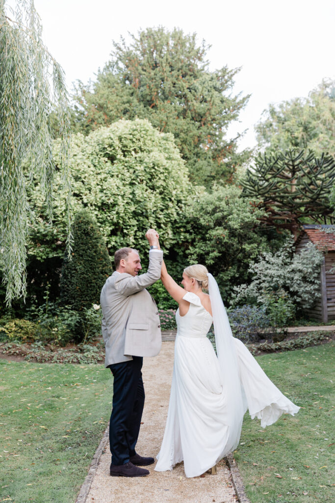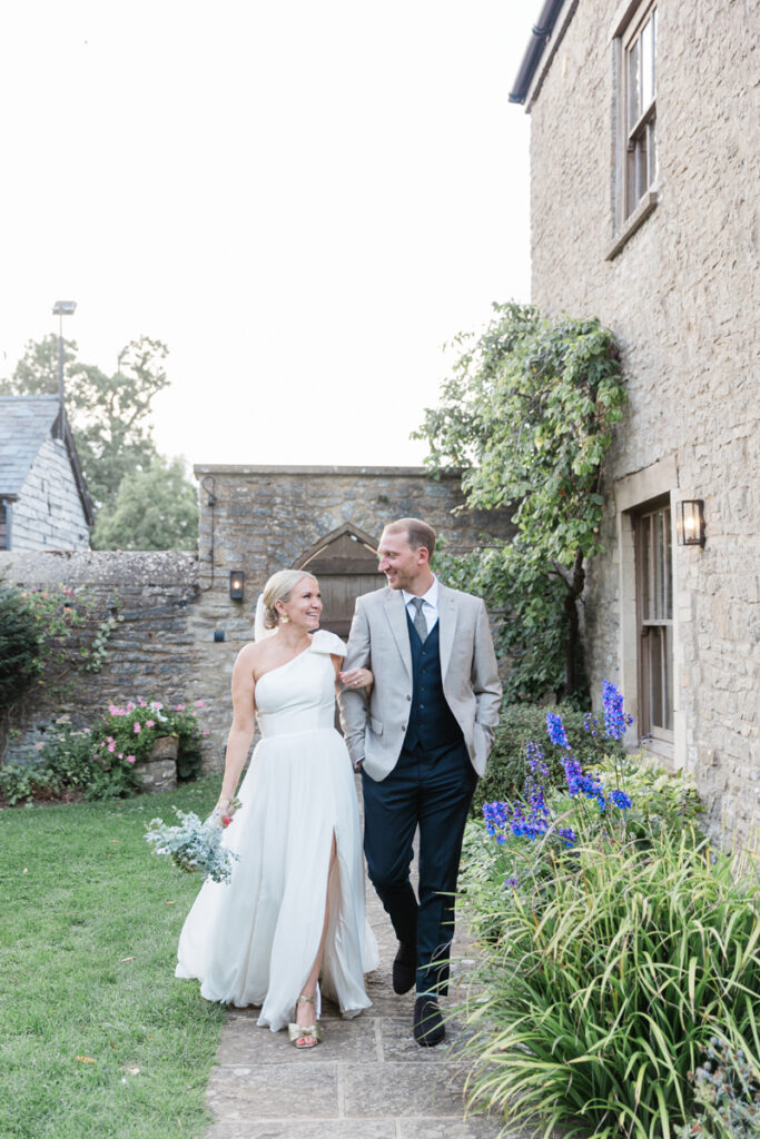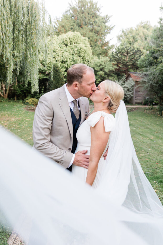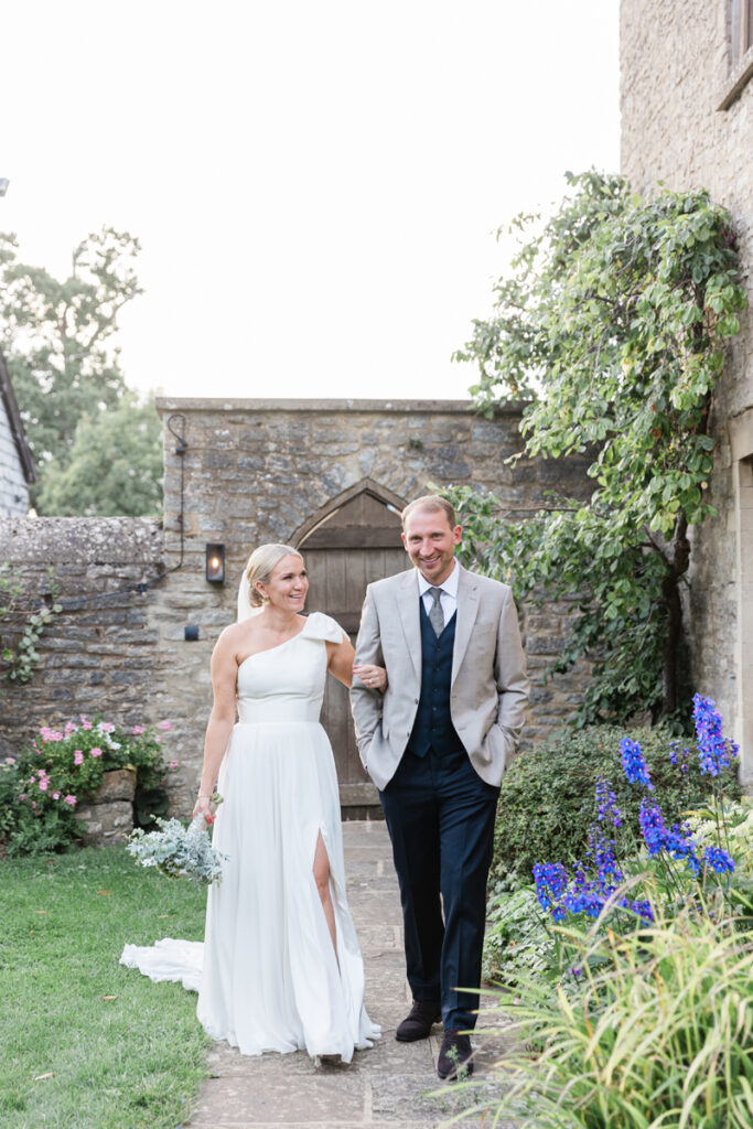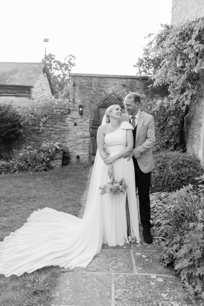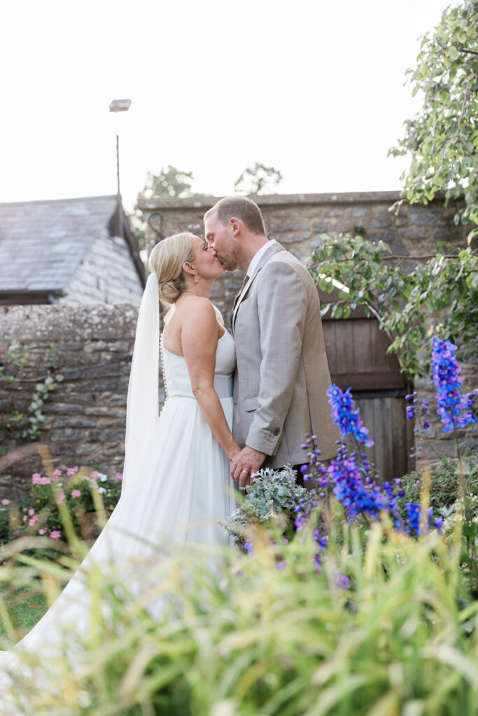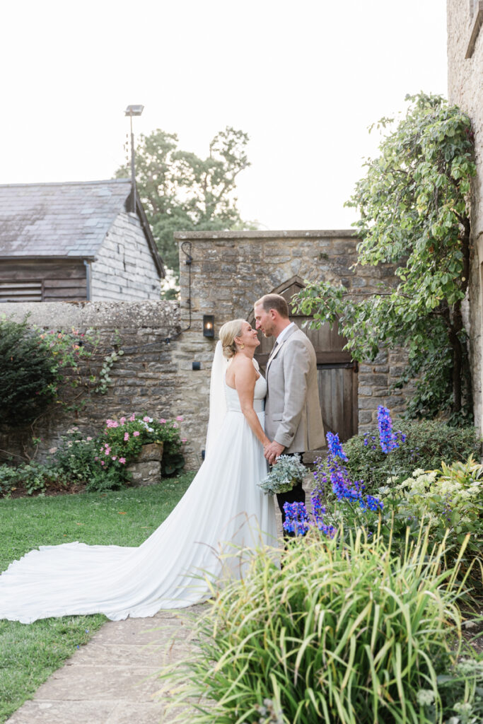After the ceremony, we took a gentle wander through The Tythe Barn’s gardens, which are ideal for natural couple portraits. The clipped hedges, soft pathways and surrounding countryside offer so many beautiful backdrops without ever feeling forced or overly posed.