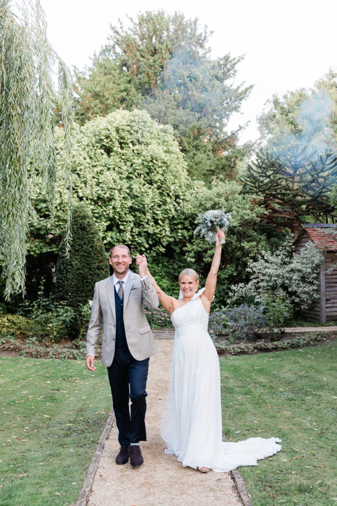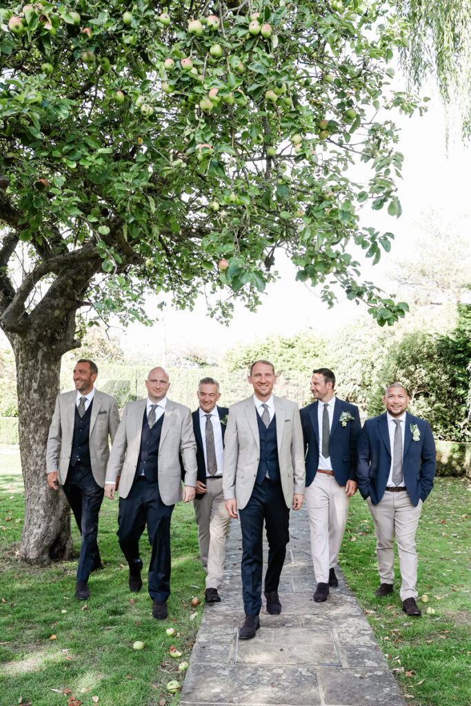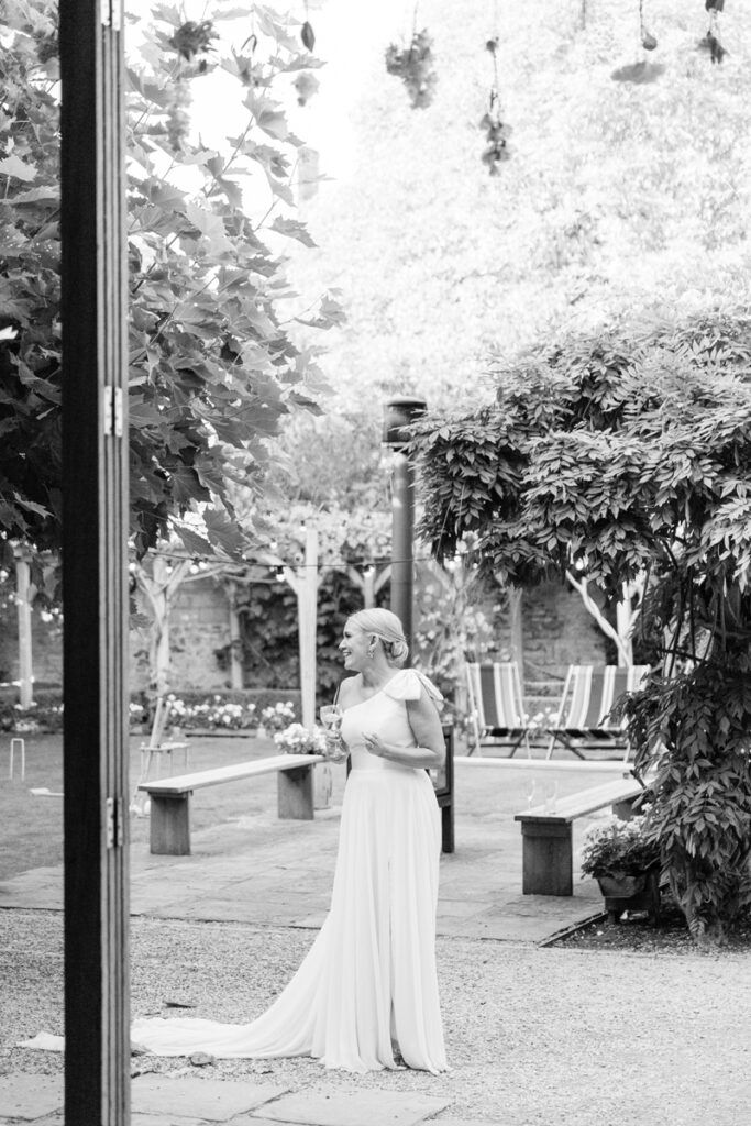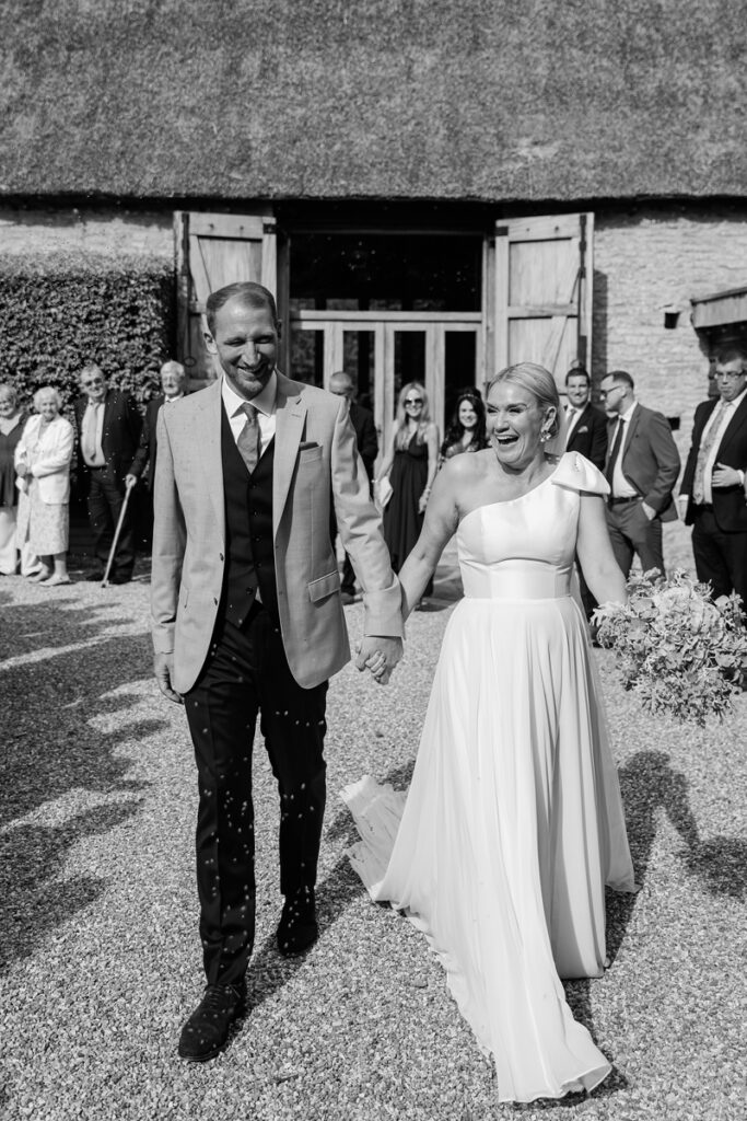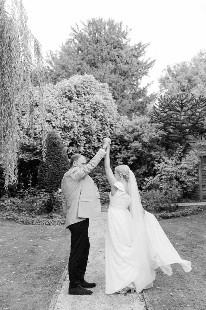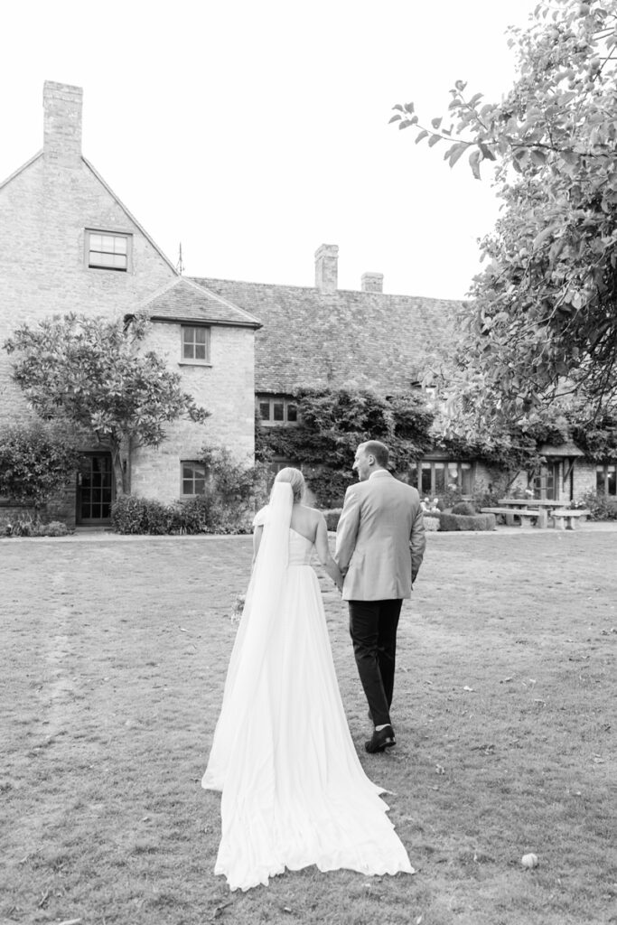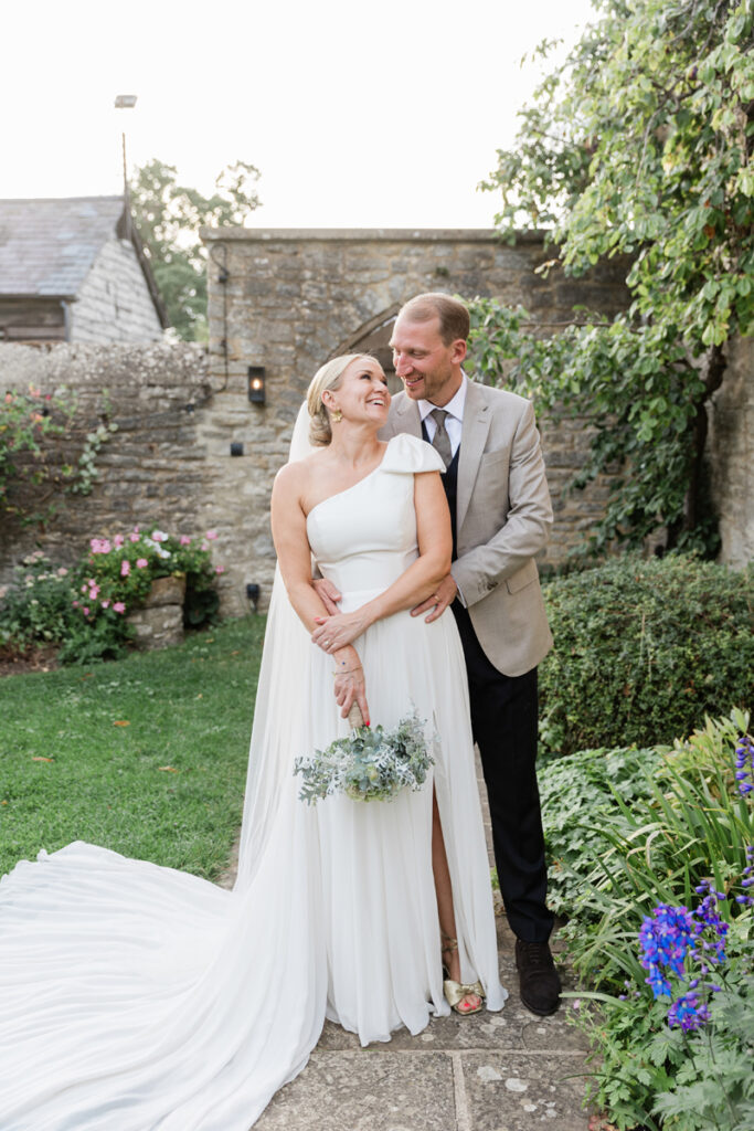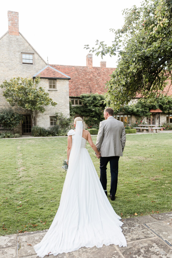 After the ceremony, we took a gentle wander through The Tythe Barn’s gardens, which are ideal for natural couple portraits. The clipped hedges, soft pathways and surrounding countryside offer so many beautiful backdrops without ever feeling forced or overly posed.