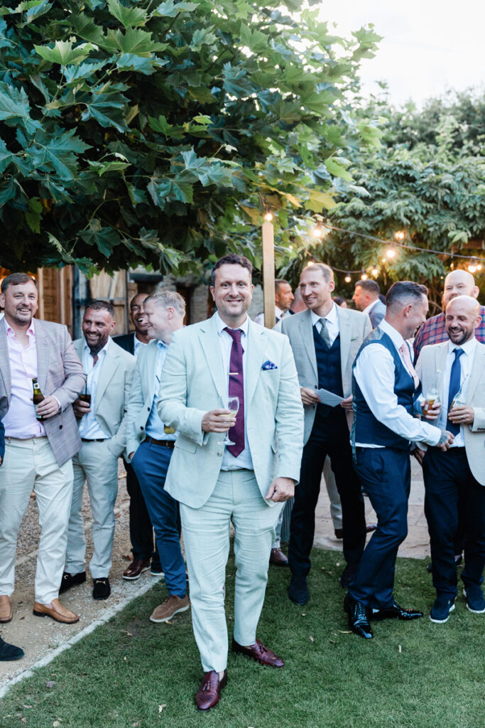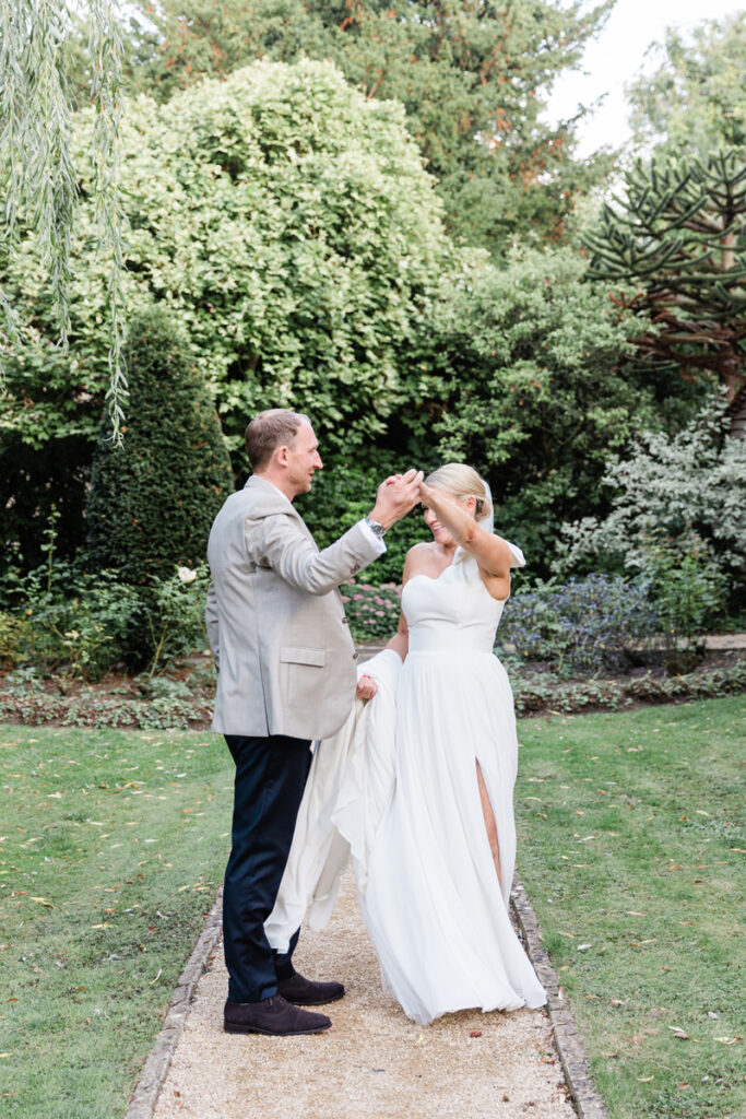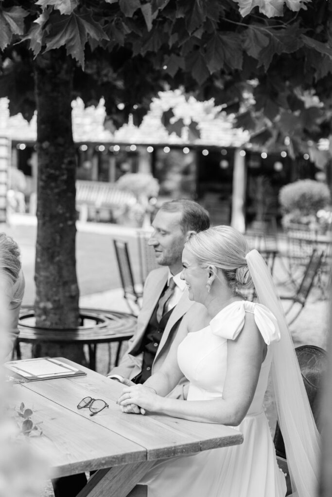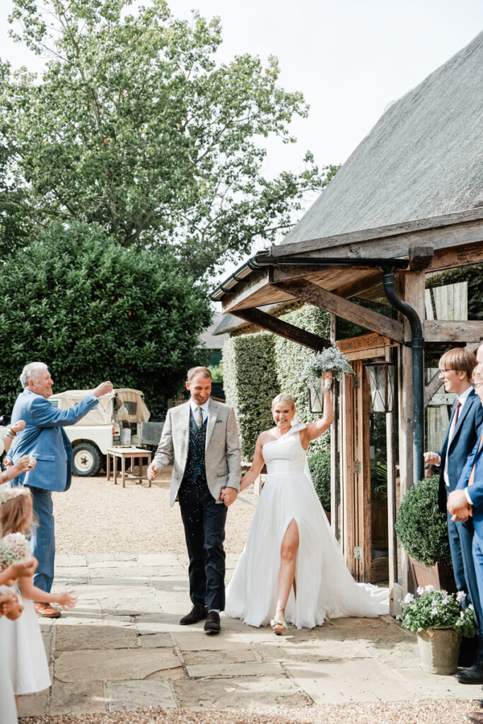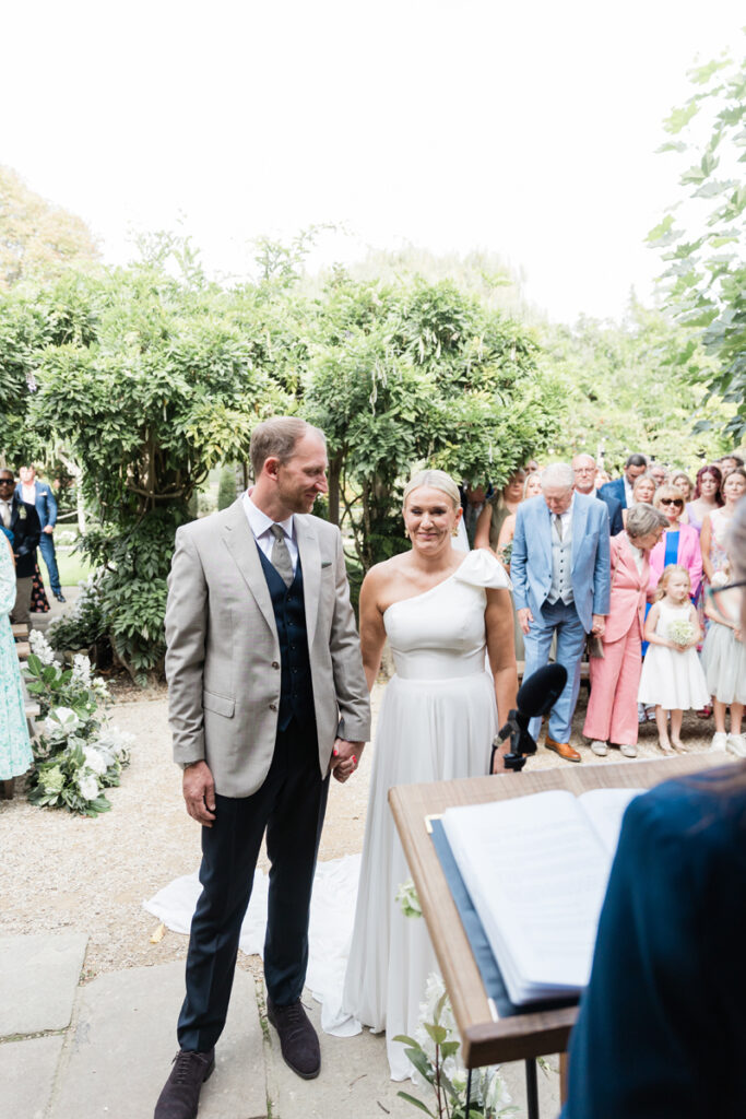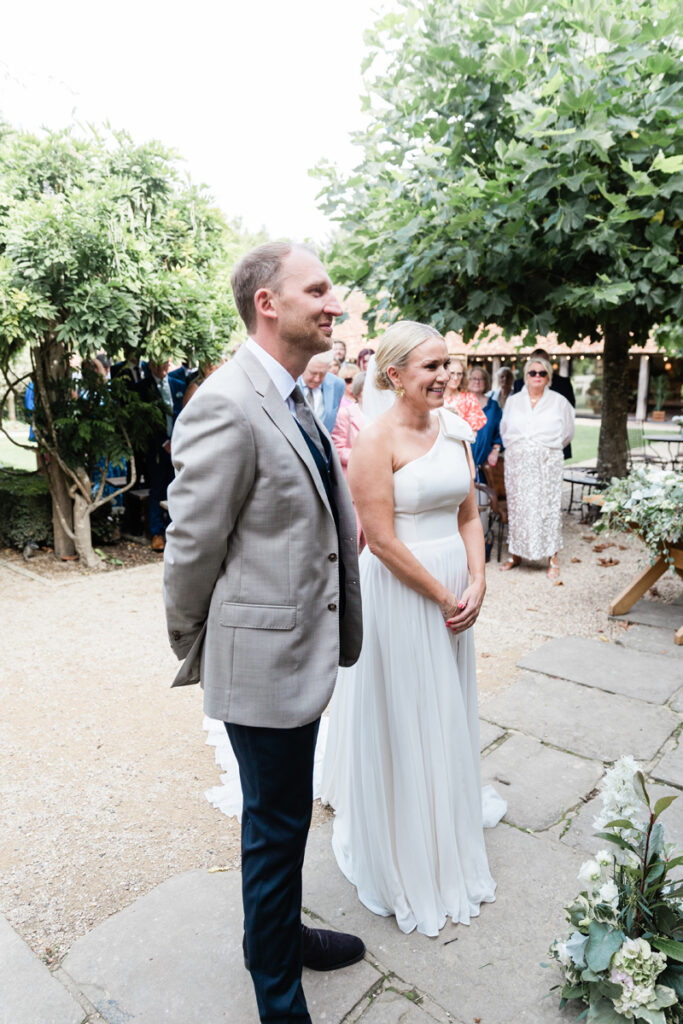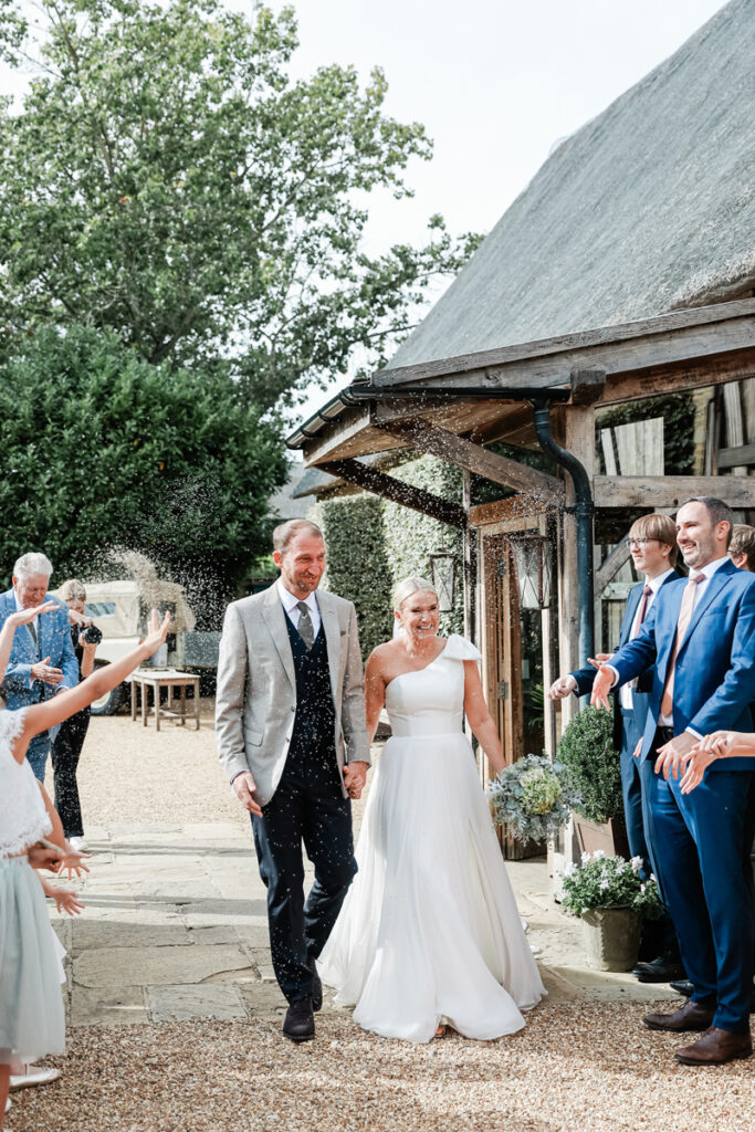 After the ceremony, we took a gentle wander through The Tythe Barn’s gardens, which are ideal for natural couple portraits. The clipped hedges, soft pathways and surrounding countryside offer so many beautiful backdrops without ever feeling forced or overly posed.