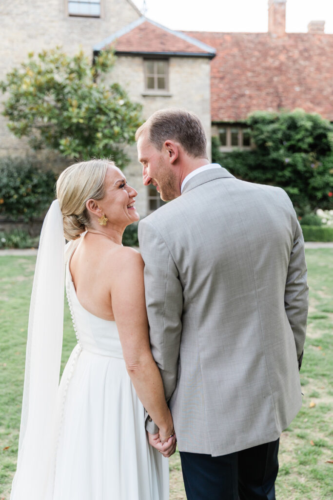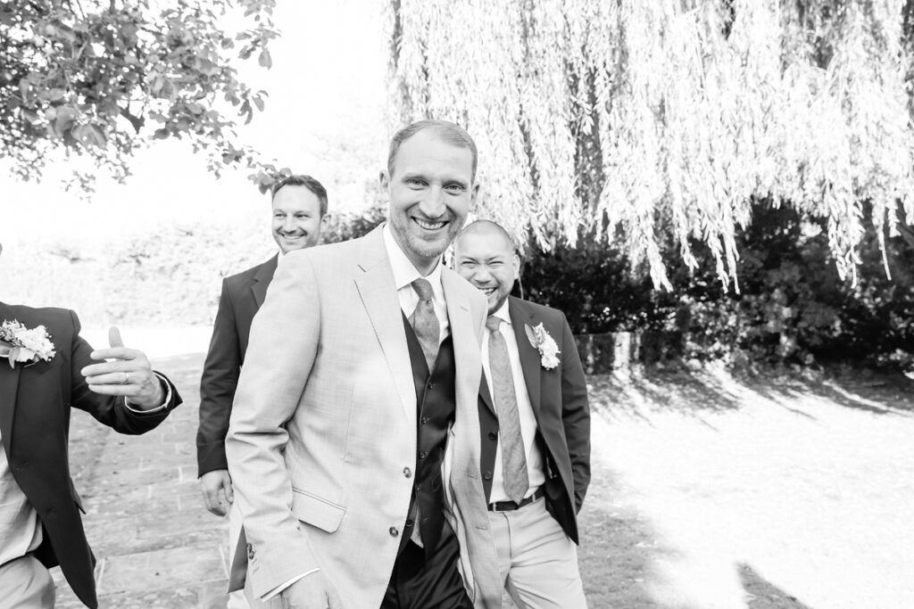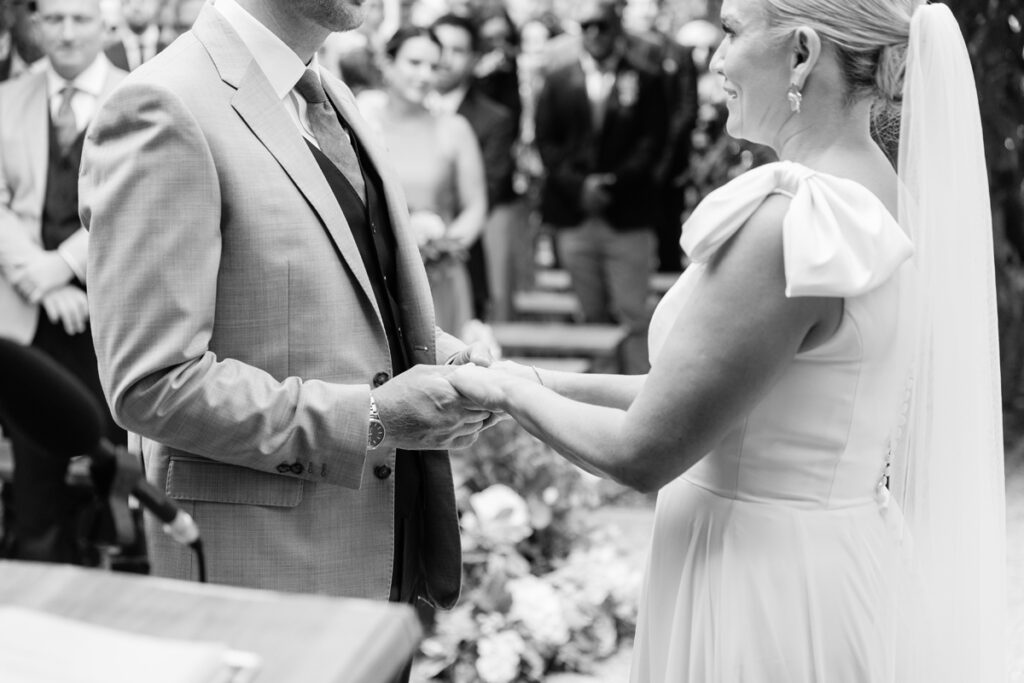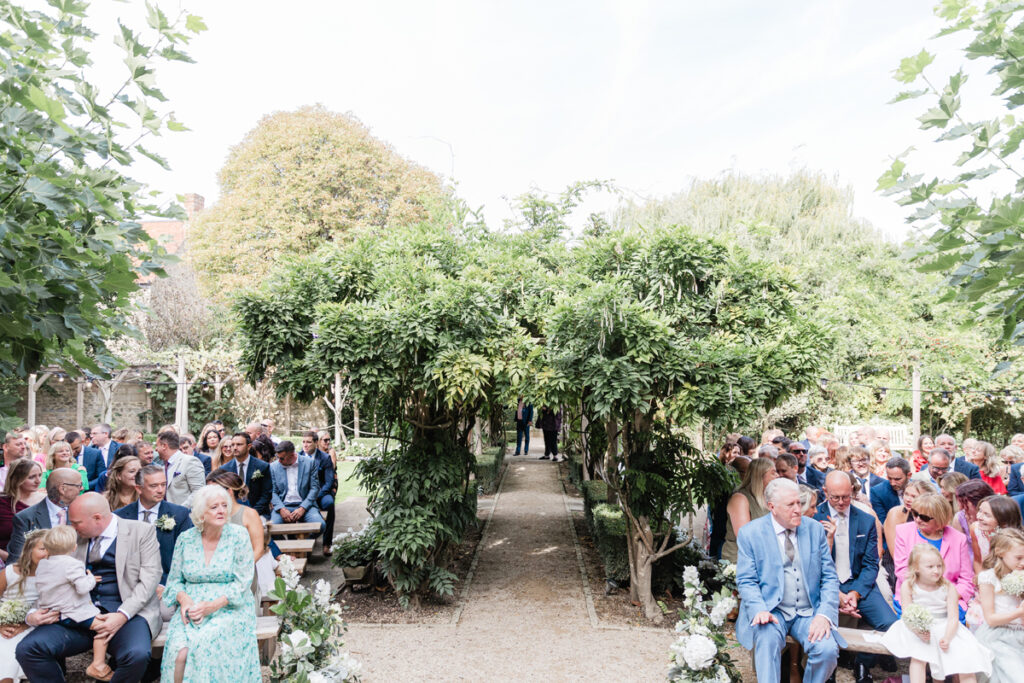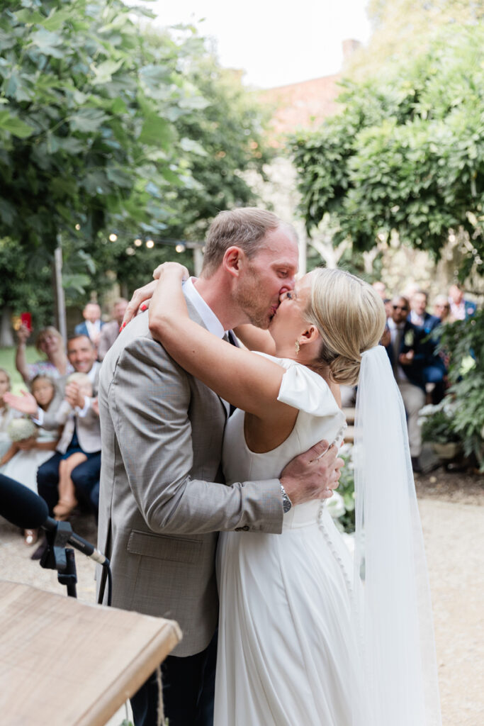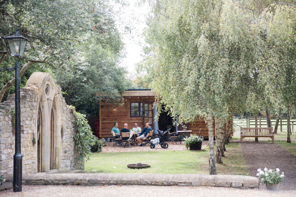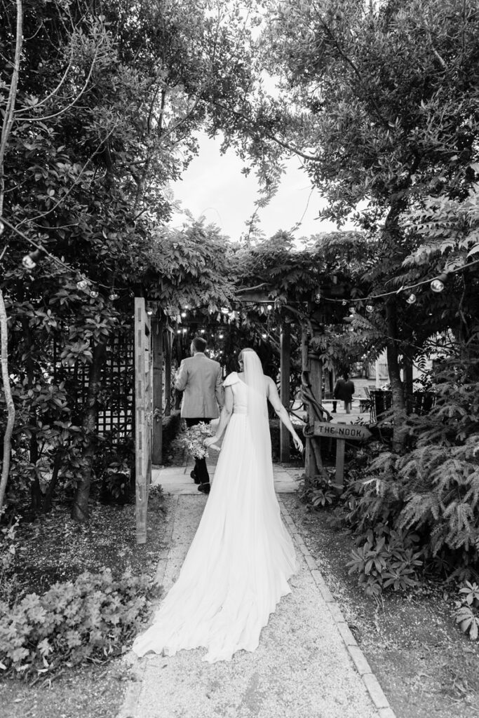 After the ceremony, we took a gentle wander through The Tythe Barn’s gardens, which are ideal for natural couple portraits. The clipped hedges, soft pathways and surrounding countryside offer so many beautiful backdrops without ever feeling forced or overly posed.