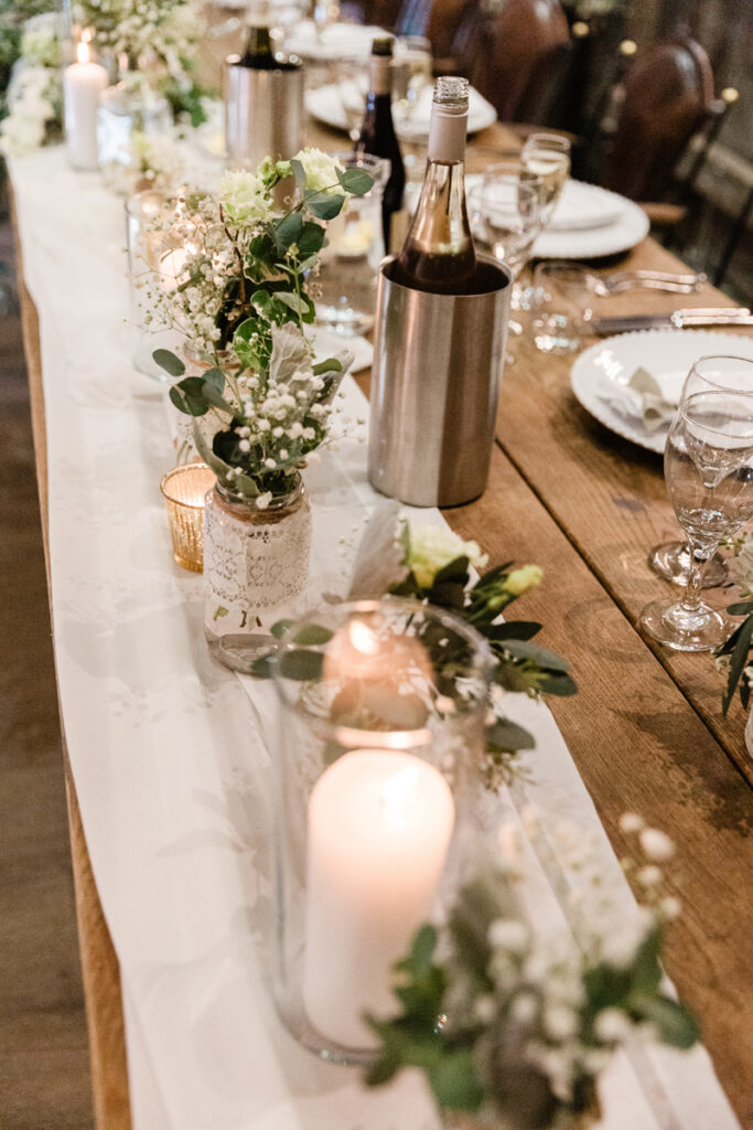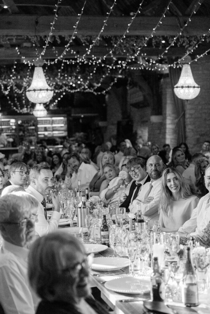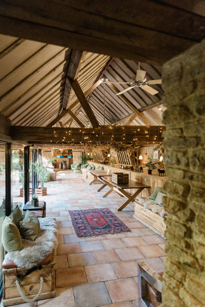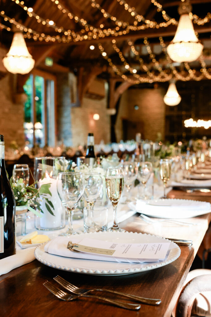 As the day moved into the evening, The Tythe Barn truly came into its own. Once the lights were switched on, the barn took on a warm, romantic glow that felt both cosy and magical.